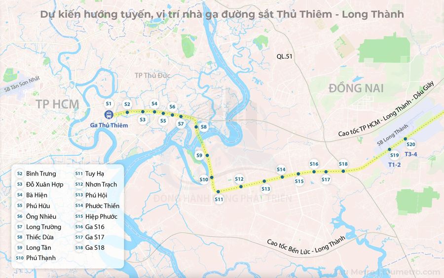 Dự kiến vị trí ga của tuyến đường sắt Thủ Thiêm – Long Thành.
